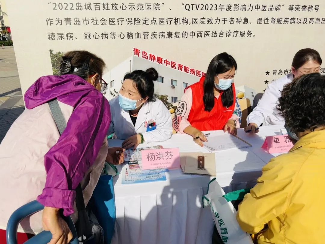 青岛静康中医肾脏病医院作为一家中西医结合的医疗机构,凭借20年来优质的医疗服务口碑受邀参展,携手政府相关职能部门、三甲医院名医专家、诚信为老服务机构等共同助力养老事业发展。我院一病区主任单珊、针灸科医生张喜林、血液净化中心主任杨洪芬及护士李萌雅,组成一支专业医疗小组参展,向广大老年朋友提供更全面、精准的医疗服务,同时向老年朋友传递健康生活理念。